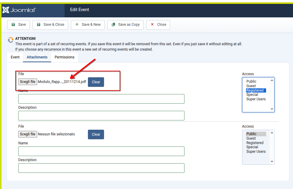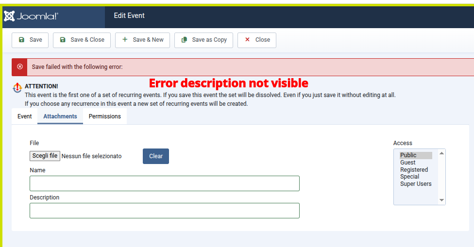 Actually, I don't do anything special, just picking up a pdf file and pressing "Save" on a recurring event I get the error.
