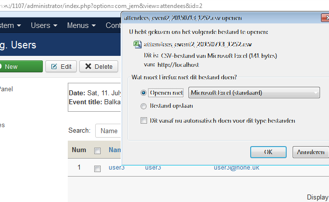 Re: Attendees-view: Export function