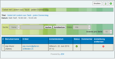 9 years 5 months agoYou need to provide a My Events view on frontend. There the user gets a list of all events owned by this user with clickable number of attendees as shown in Jojo's first screenshot.rstarkey wrote: I attempted what you stated from the front end - which is how my calendar coordinators would need to obtain this information - and am unable to find "number of attendees" on the front side, only the list of users who have registered for the event.