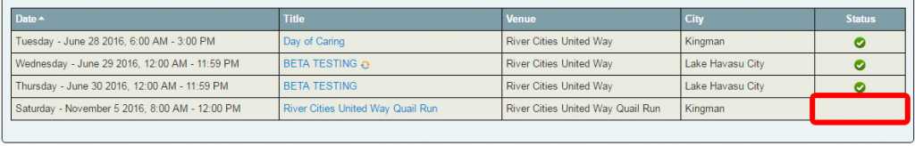 I would say on this event no waitinglist is activated? Because in this case status is alyways "attending" nothings is shown. If you like you can change the "if ($row->waitinglist)" to "if (1)" (or remove it but then also the else/td/endif lines).
