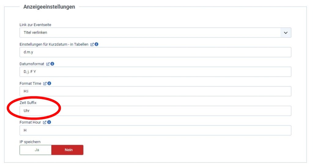 Ich finde für das JEM-Basis Modul keine Möglichkeit einen Suffix für die Uhrzeit einzufügen, also z.B. 10:30 Uhr.