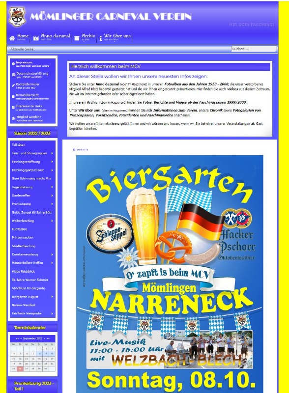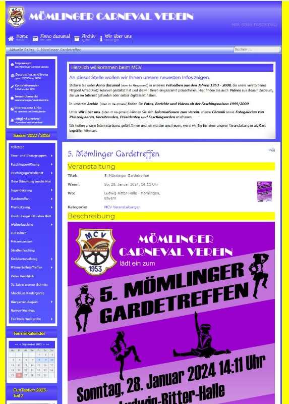 Sobald man eine dieser Veranstaltungen anklickt, erscheint die Eventseite im Main Content und das Modul "Herzlich willkommen..." an der Modulposition beforcecontent1.