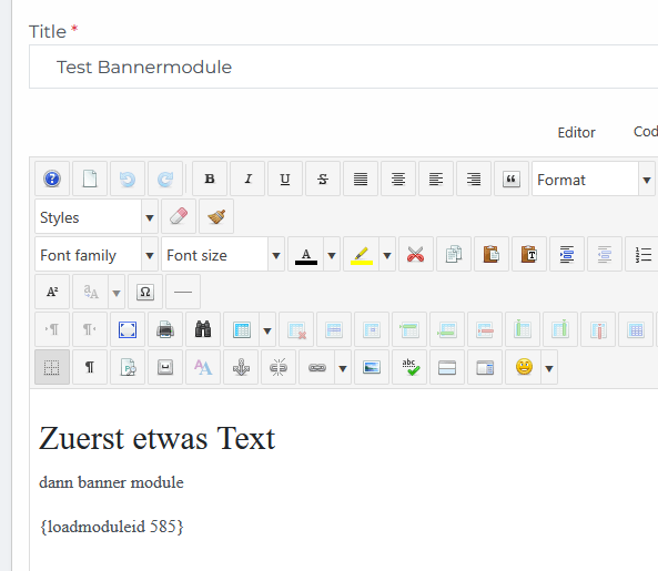Ich bin den Anweisungen gefolgt und habe an einer geeigneten Stelle in einem (von mir erstellten) Artikel/Beitrag diesen Modulaufruf eingefügt {loadposition xxx} - das funktioniert auch gut nur das eben alles ohne jegliche Formatierungen (nur Plaintext ohne Bilder) dargestellt wird. Für meine Begriffe liegt das am Bannermodul selbst, weil es für solche (Einsatz)Zwecke wohl nicht erfunden wurde.