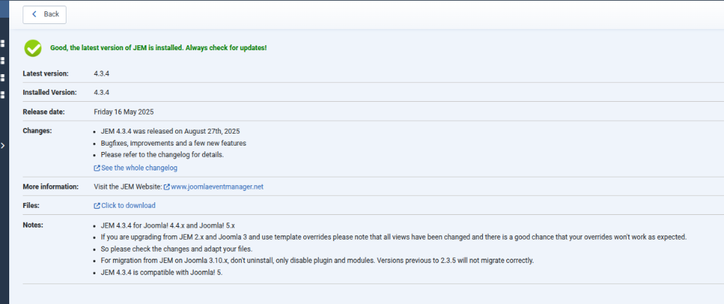 Sorry, I'm not sure to understand what you mean. I followed the standard Joomla extensions check feature to upgrade JEM, and this is the current situation: