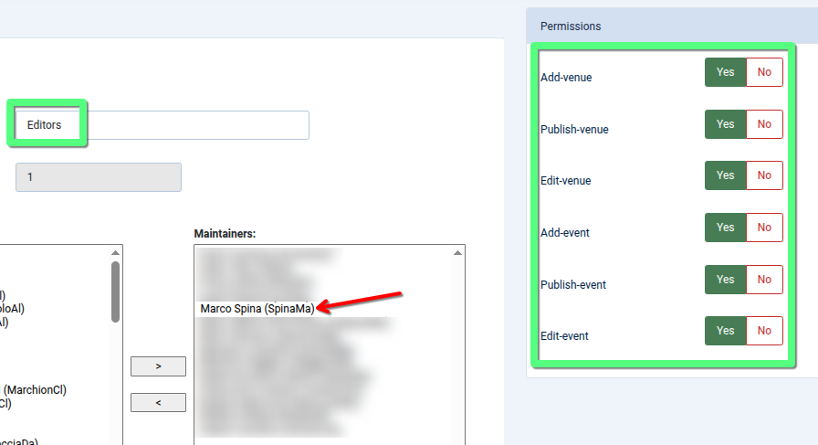 My "normal" user is a member of an "Editors" JEM group, with the permissions shown in the picture.