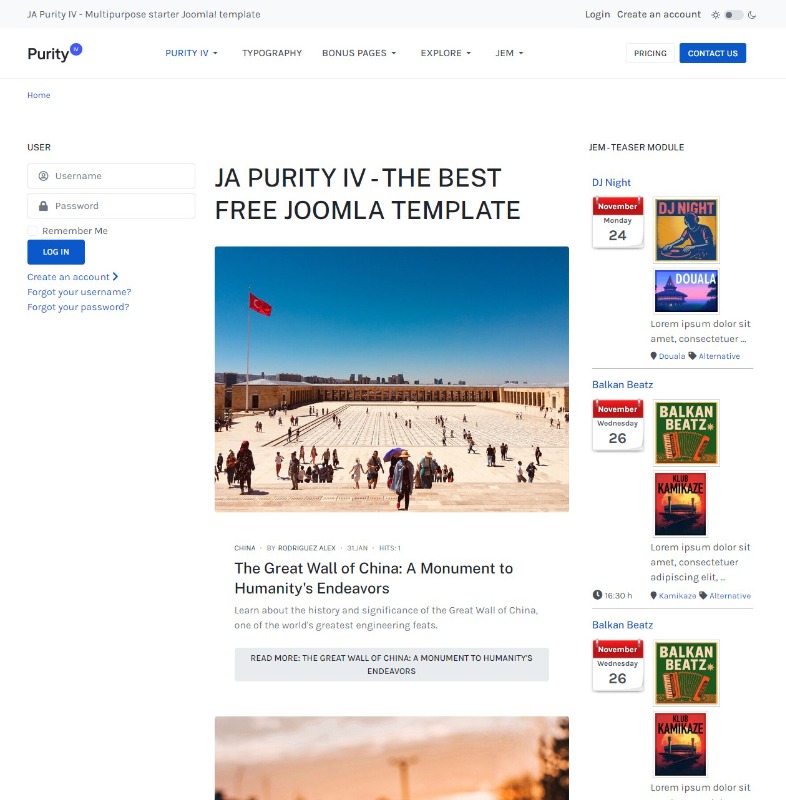 I have tested the Purity IV template with the default layout, and it’s working, because the default layout works with module positions. It also works if the menu for the JEM module (Teaser) is configured with the Cassiopeia template.