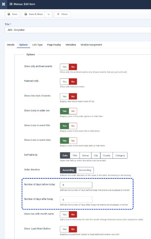 Mainly the values of the 'Number of days before today' and 'Number of days after today' fields.