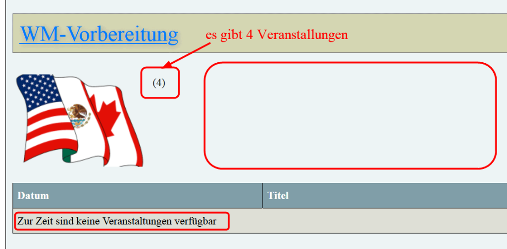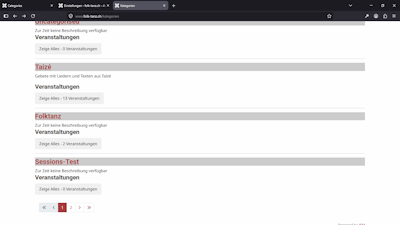 After updating the component to version 4.41, the category display in the table stopped displaying events. Now, when you access the category overview, only the category names are displayed, and events are visible only after you enter a specific category.